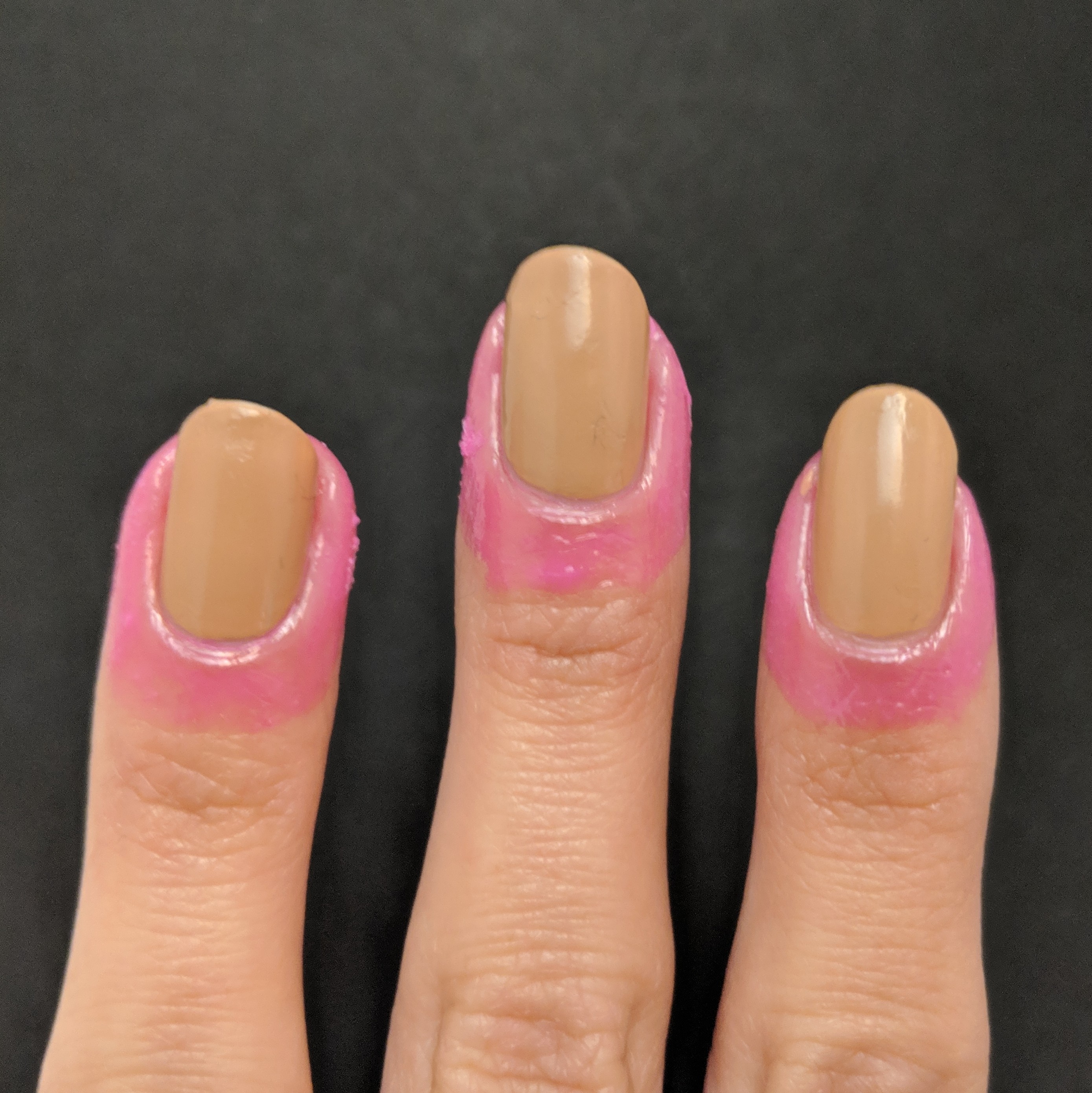 I started with another fun scented base coat, and this Frooty Pebbles smell is my absolute favorite!  Again, I just wish the scent lasted longer.  I should have gotten it in a top coat because I feel like their top coat scents last longer.  Then, I added two coats of a nude brown polish.  I’ve had this polish for years, and I never noticed how much I like it paired with my skin tone.