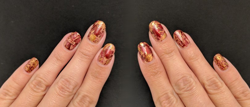 Hello and welcome! In contrast to last week, I’ve finally found my fall inspiration. And even though the weather feels like it jumped straight from summer to winter, I’m determined to do at least a few fall mani designs.